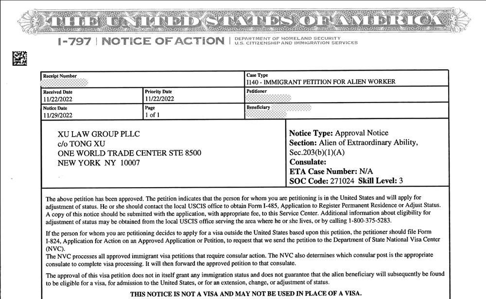 Aprobación EB1-A recibida en 7 días para un diseñador de China